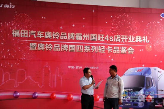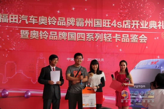 2014年9月28日,一場熱鬧而喜慶的開業(yè)典禮在河北省霸州市臨近長途汽車站的112國道旁隆重舉辦。精彩的舞獅和動感的中國鼓表演開場之后,與會的領(lǐng)導(dǎo)嘉賓現(xiàn)場剪彩,福田奧鈴品牌霸州國旺4S店宣布正式營業(yè)。